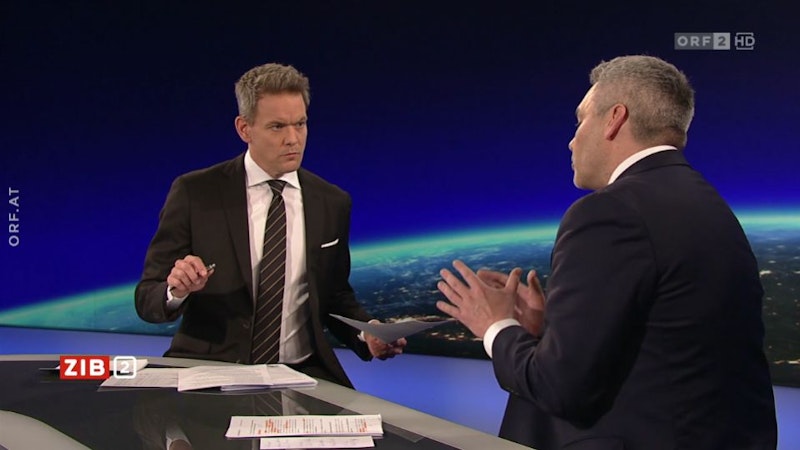 Die Grüne präsentierte sich dabei, zum Glück für Thür, von Beginn weg weitaus umgänglicher als der bissige ÖVP-Chef wenige Tage zuvor. Der Kontrast könnte stärker nicht sein. Wo sich Nehammer mit einem unterkühlten "Nichts zu danken" aus dem Studio verabschiedet hatte, begrüßte Gewessler den Anchorman in aller Herzlichkeit: "Schönen guten Abend und herzlichen Dank für die Einladung".