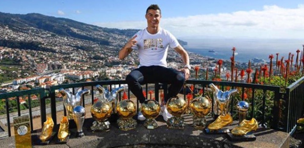 Für alle, die das nicht wissen, posierte der 31-Jährige bei seinem Neujahrsgruß auf Instagram mit all den persönlichen Trophäen, die er bis jetzt ergatterte. Und die wären: Fünfmal der „Ballon d'Or" als Weltfußballer, viermal der Goldenen Schuh als bester Torschütze Europas, dreimal die Uefa-Trophäe als „Europas Fußballer des Jahres" sowie drei weitere Fifa-Trophäen. Die hügelige Landschaft seiner Heimat Madeira durfte dabei als Hintergrund dienen.