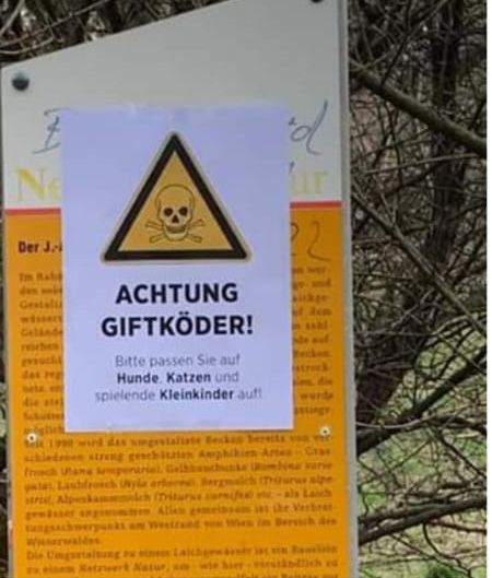 Bis Sonntag Nachmittag sind laut den Hundehaltern in Hietzing schon acht Hunde sowie ein Fuchs verendet. Alle Hunde zeigten die Symptome: Würgen, Erbrechen, Zuckungen und schließlich Herzstillstand.