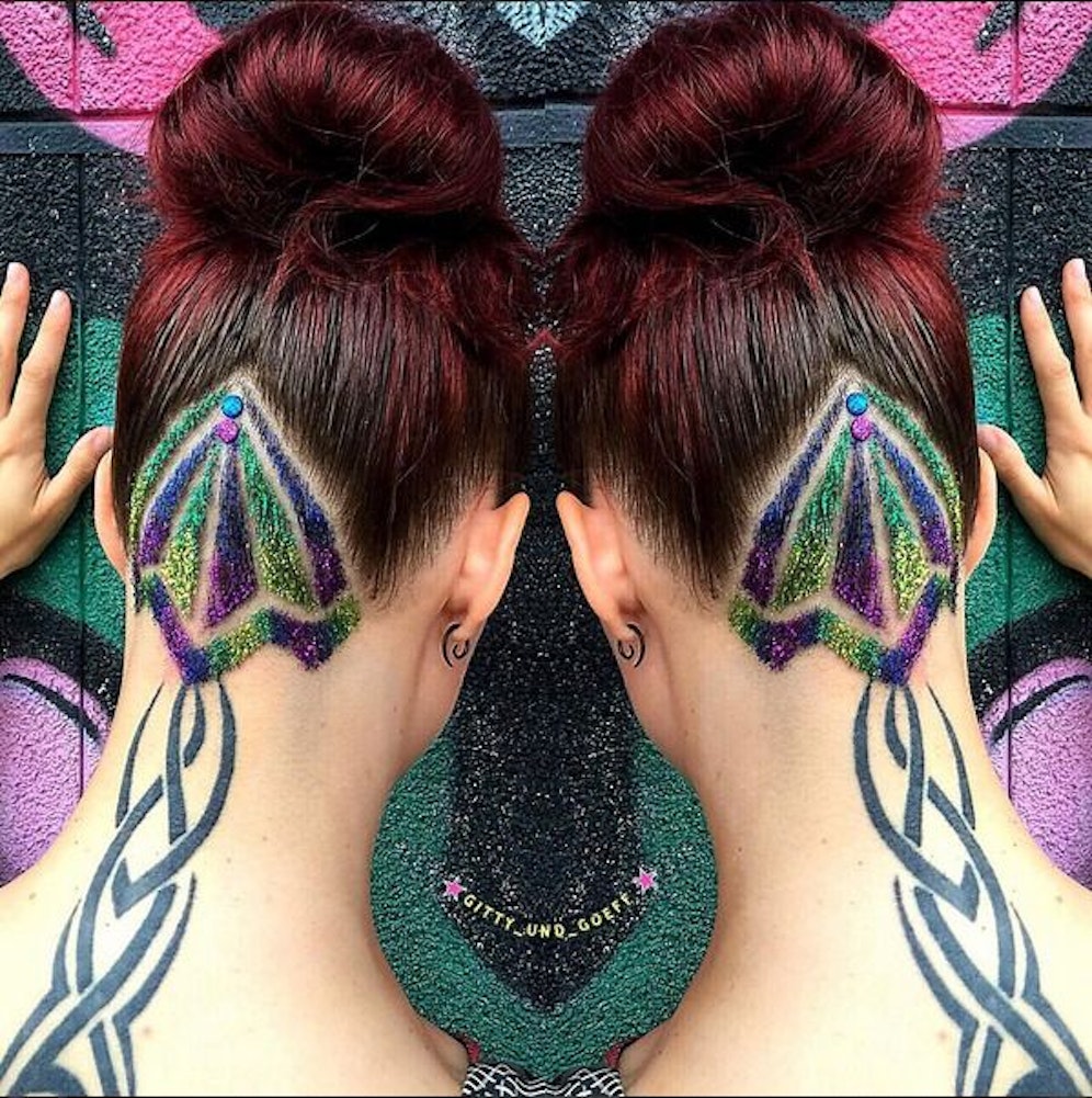Hallo, was glitzert denn da. Hair-Tattoos sind ja nichts Neues, jetzt werden die kunstvollen Muster auch noch mit Glitzer und Farbe aufgepimpt. Hier die schönsten Varianten.