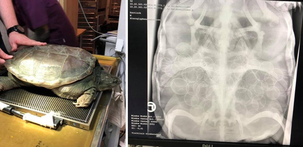Beim Röntgen dann die große Überraschung: Im Bauchraum der Schildi wurden ganze 73 Eier gezählt. "Wir alle trauten unseren Augen kaum. Normal legen Schnappschildkröten zwischen 20 und 30 Eier, in seltenen Fällen sogar bis zu 50. Aber gleich 73!", freut sich der Tierschützer.