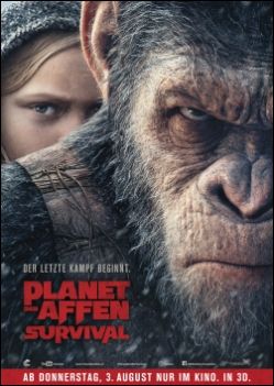 "Planet der Affen: Survival" startet am Donnerstag, 3. August, nur im Kino. In 3D. Das Gewinnspiel ist bis 6. August 2017 (23.59 Uhr) aktiv. Der Rechtsweg ist ausgeschlossen.
