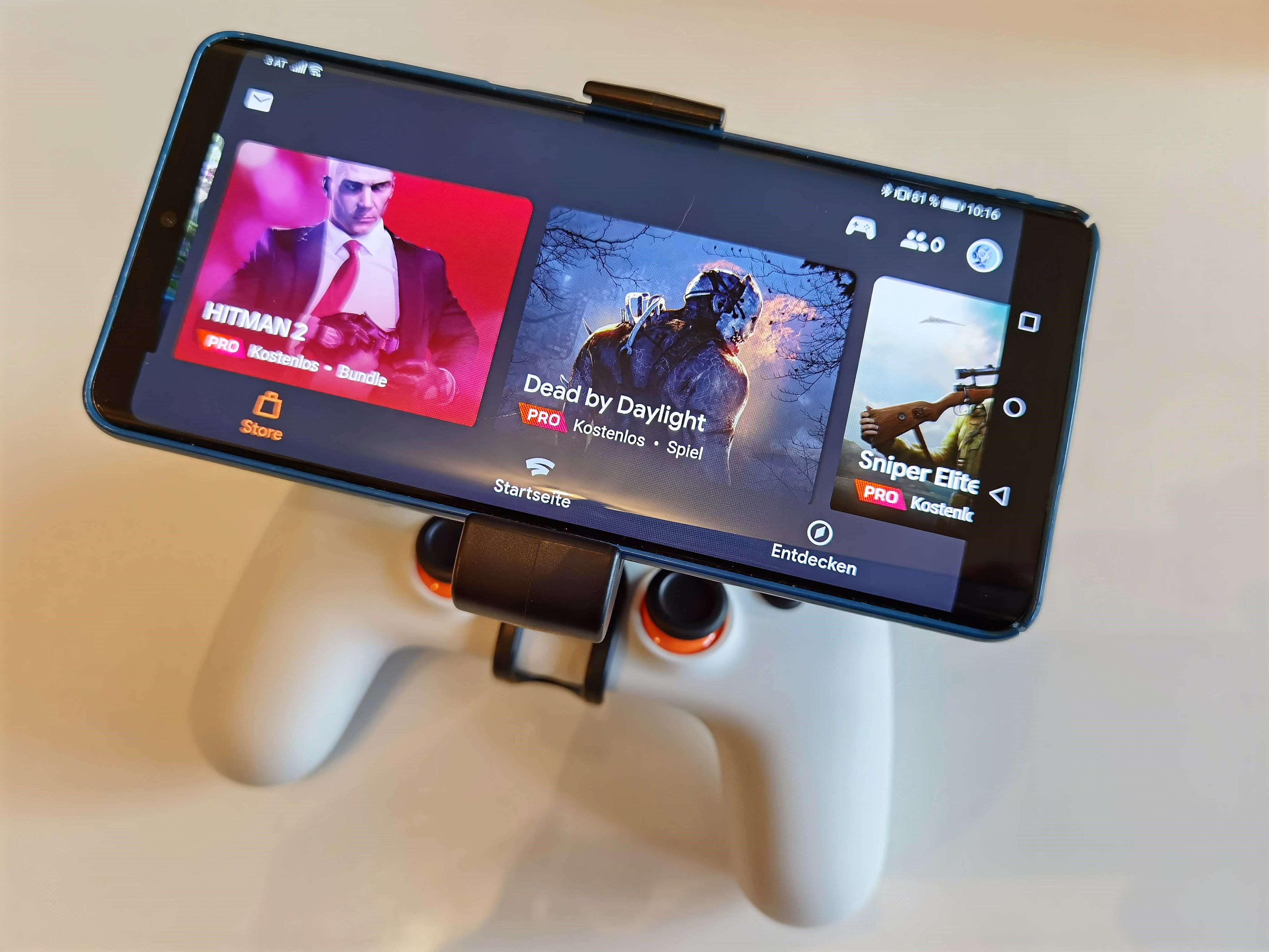 Nicht einmal der Datentarif muss ein allzu teurer sein. Als Mindestanforderung an die Internetverbindung nennt Google 10 Mbit/s Download und 1 Mbit/s Upload für 720p mit 60 Fps und Stereo-Sound. Sollen es 1080p mit 60 Fps und HDR sowie 5.1-Sound sein, müssen mindestens 20 Mbit/s her. Und will man in 4K und mit allen sonst möglichen Features zocken, sollte die Internetverbindung zumindest 35 Mbit/s im Download schaffen. Im Test wurde eine Verbindung mit 25 Mbit/s genutzt.