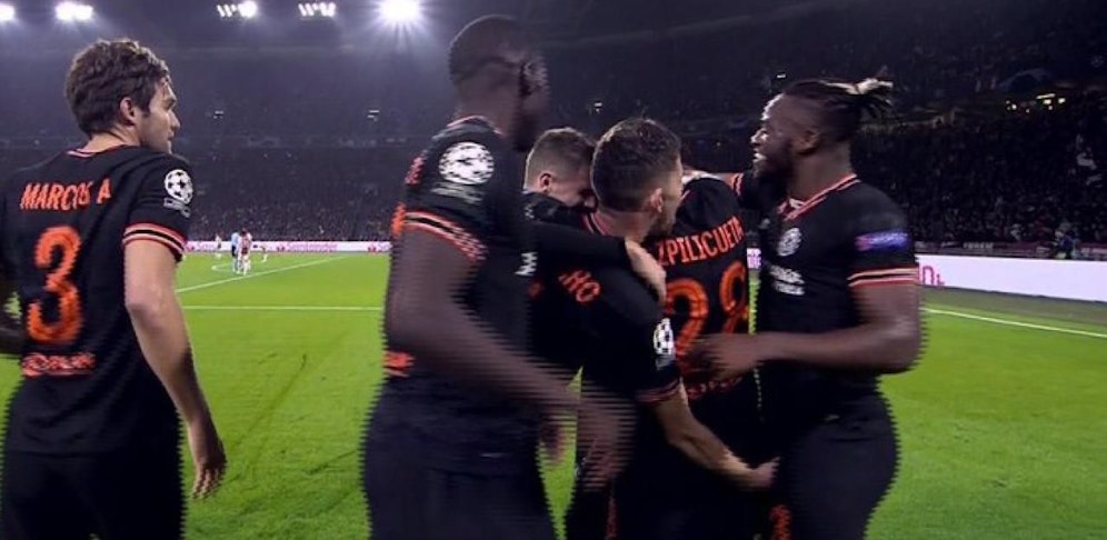 Da klingelt es, aber so richtig! Chelsea-Knipser Michy Batshuayi schoss Chelsea in der 86. Minute zum wichtigen Auswärtssieg gegen Ajax Amsterdam, wurde dann beim Torjubel begrapscht.