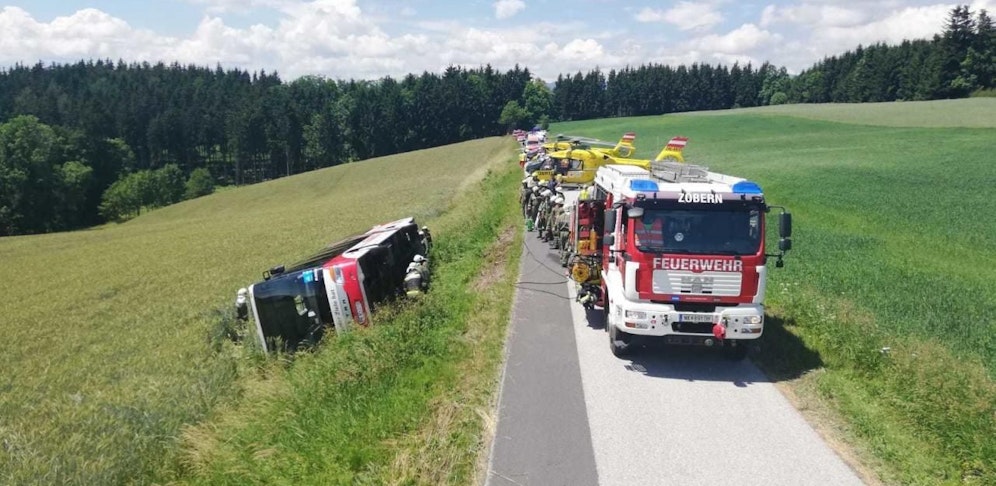 Schwerer Unfall am Montag gegen 11.45 Uhr auf der L4181 in Pichl, einem Ortsteil von Zöbern (Bezirk Neunkirchen): Ein Buschauffeur kippte mit seinem Reisebus von der Straße, das Fahrzeug stürzte im angrenzenden Feld um.