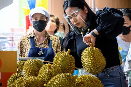 Durians sind tropische, stachelige Früchte, die bis zu drei Kilo schwer werden. Sie haben gelbes, süss schmeckendes Fruchtfleisch. Den leckeren Geschmack machen sie aber mit einem teuflischen Geruch wieder wett: Ihr Duft wurde schon mit schimmeligem Käse, verrotteten Zwiebeln und totem Fisch verglichen.