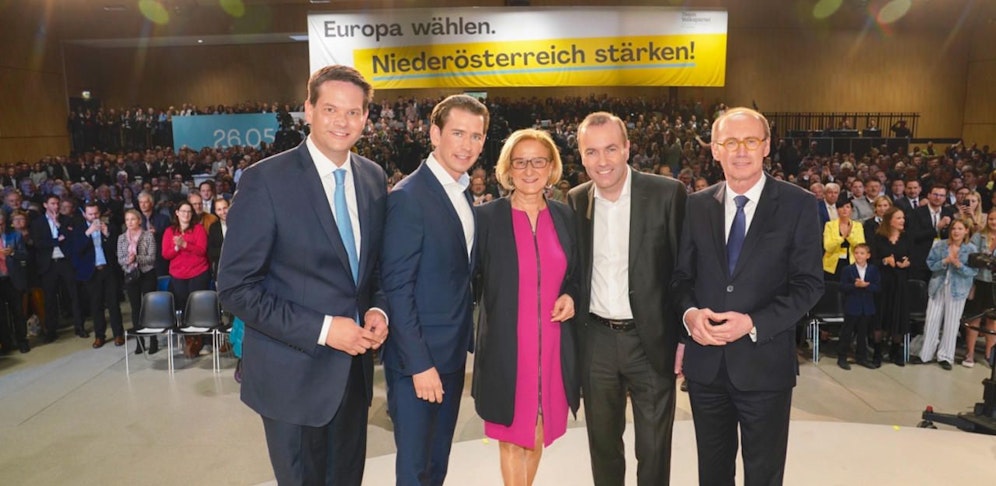 Im Laufe des Abends werden noch spannende Gespräche auf der Bühne mit Landeshauptfrau Johanna Mikl-Leitner, Bundeskanzler Sebastian Kurz, EVP-Spitzenkandidat Manfred Weber, Bundes-Spitzenkandidat Othmar Karas, Generalsekretär Karl Nehammer, NÖ-Spitzenkandidat Lukas Mandl und VPNÖ-Landesgeschäftsführer Bernhard Ebner erwartet.