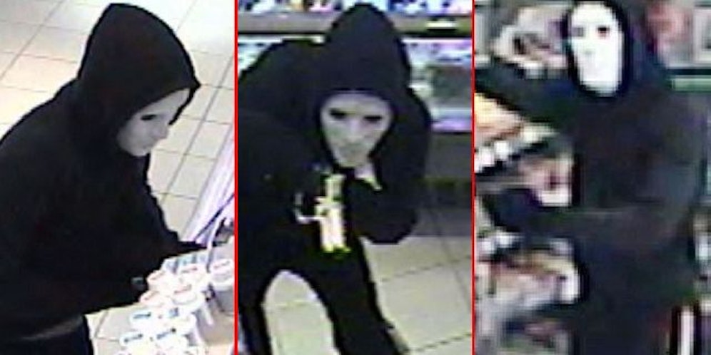 Mit einer unheimlichen weißen Plastikmaske vermummt und einer chromfarbenen Pistole bewaffnet stürmte am Dienstag um 4 Uhr früh ein Mann die OMV-Tankstelle in Dornbirn-Schwefel. Die eingeschüchterte Kassierin händigte dem Täter Bargeld aus, dann flüchtete der Unbekannte.