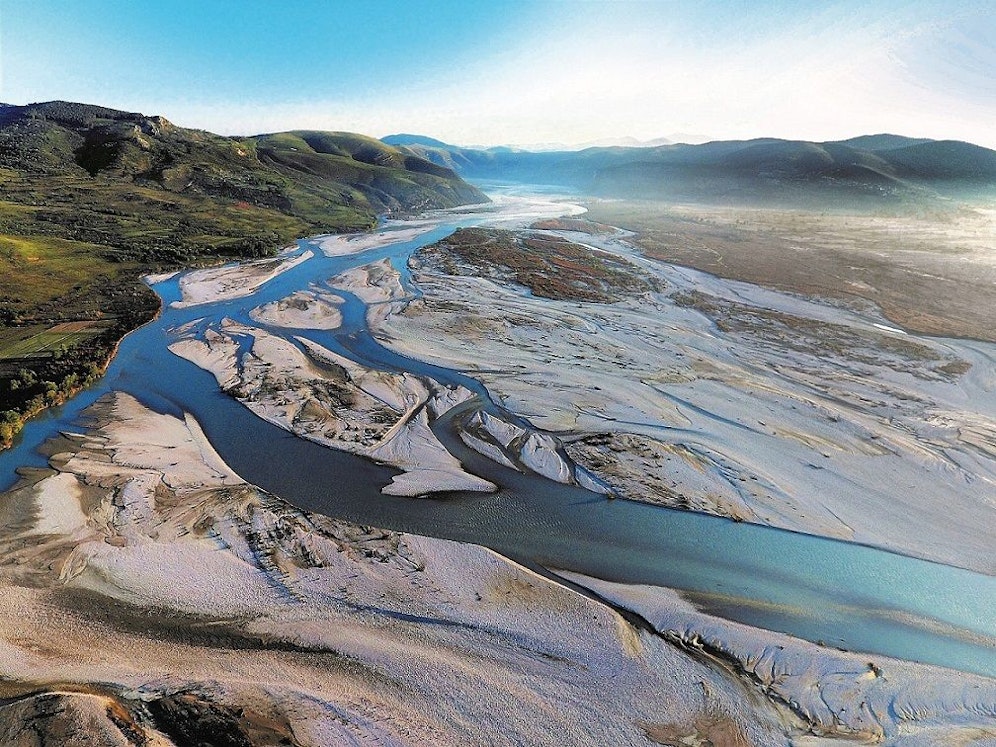 Die Vjosa gilt als der letzte "wilde" Fluss in Europa, auf einer Länge von 270 Kilometer vom Pindus-Gebirge in Griechenland fließt sie durch enge Schluchten, Ebenen und Wälder in Albanien bis zur Adria-Küste.