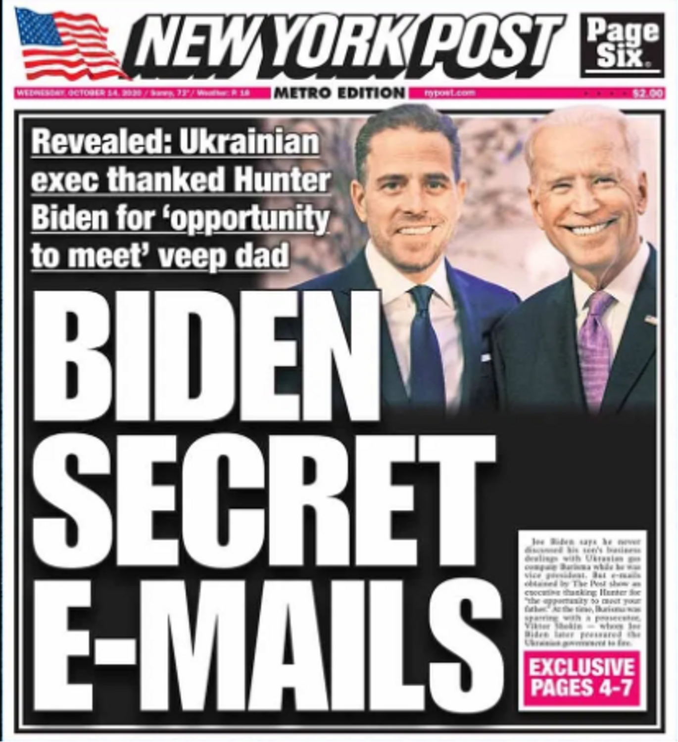 Die "New York Post" hat am Mittwoch unter Berufung auf ihr zugespielte E-Mails den demokratischen Präsidentschaftskandidaten Joe Biden unter Beschuss genommen. Dabei wärmt das konservative Boulevardblatt eine eigentlich alte Geschichte auf: Biden sei 2015 als US-Vizepräsident gegen den ukrainischen Generalstaatsanwalt vorgegangen, als dieser wegen Korruption gegen eine ukrainische Firma ermittelt hatte, in deren Vorsitz Bidens Sohn Hunter saß (siehe Infobox weiter unten).