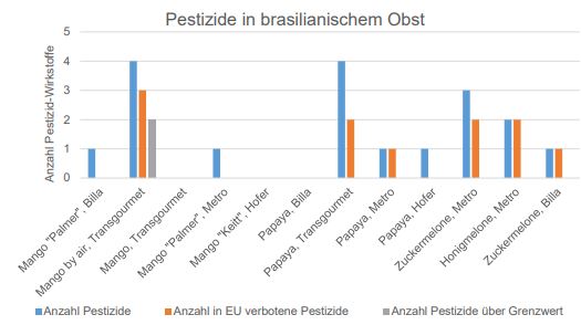 "Unser Test weist einen alarmierenden Kreislauf nach: Europäische Agro-Chemie-Konzerne machen mit gefährlichen Spritzmitteln, die in Europa bereits mit gutem Grund verboten wurden, in Südamerika Millionenumsätze", sagt Sebastian Theissing-Matei, Landwirtschaftsexperte bei Greenpeace in Österreich. "Diese werden dann vor Ort teils großflächig mit Flugzeugen ausgebracht und wirken sich katastrophal auf Mensch und Natur aus. Schlussendlich finden wir Rückstände dieser Pestizide dann auch auf unseren Tellern wieder” Greenpeace ließ von einem unabhängigen Labor zwölf Proben Mangos, Papayas und Melonen aus verschiedenen österreichischen Super- und Großmärkten auf Pestizide untersuchen."