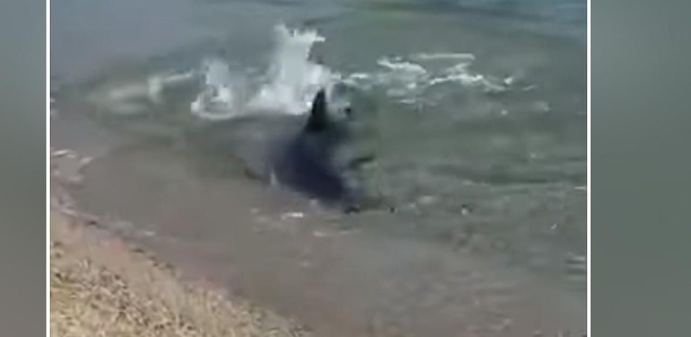 Kurze Zeit später landete der Clip dann auf Facebook, seitdem sorgt die Aufnahme für Wirbel. Denn auf dem Video ist zu sehen, wie der Hai am Ufer seine Runden zieht und mit seiner Flosse um sich schlägt.
