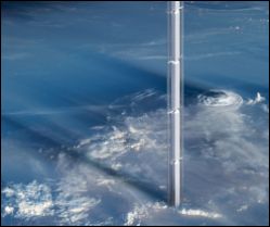 Anders als gewöhnliche Häuser soll sich der riesige Turm nicht an einem Ort befinden, sondern um die Erde kreisen – in etwa der Geschwindigkeit der Erdrotation und auf einer Umlaufbahn in Form einer Acht. So würde der Wolkenkratzer über Städten wie New York, Panama-Stadt, Miami oder Havanna zu sehen sein und in der Nacht immer wieder an derselben Position erscheinen.