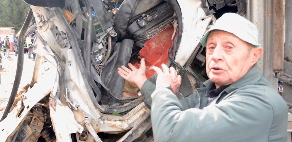„Ich sah dann in dem Führerhaus des Lkws, welcher in meinem Wohnzimmer stand, eine Hand, die winkte. Es war der Lkw-Fahrer, er war ansprechbar", so der Pensionist.