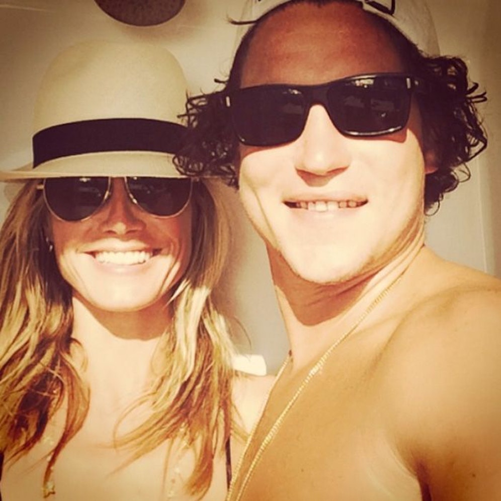 Auf dem sommerlichen Schnappschuss tragen die beiden Turteltäubchen kesse Sonnenbrillen und strahlen entspannt die die Linse der Frontkamera. Vito trägt ein lässiges Käppi, Heidi einen edlen, weißen Hut mit schwarzem Hutband. Was für ein schönes Paar!