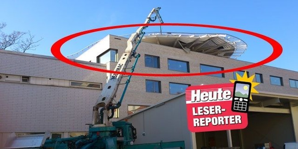 Gegen 14 Uhr kam auf der Baustelle zum schweren Unfall. Ein noch in Arbeit befindlicher Hubschrauberlandeplatz und ein darunter liegendes Stiegenhaus brachen ein.