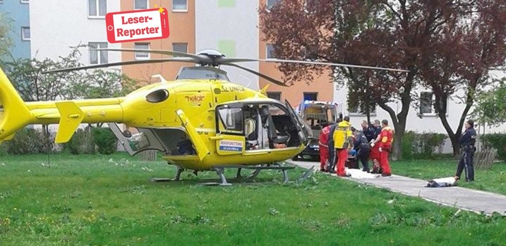 Ein Mann ist am Samstag Vormittag in seiner Wohnung in der Wiener Lindenbauergasse (11. Bezirk) zusammengebrochen. Feuerwehr und Polizei mussten laut Christian F. die Tür aufbrechen, um zum 42-Jährigen vorzudringen. Die Fotos des "Heute"-Lesers zeigen, wie der Patient mit dem Rettungshubschrauber des ÖAMTC in ein Spital gebracht wird.