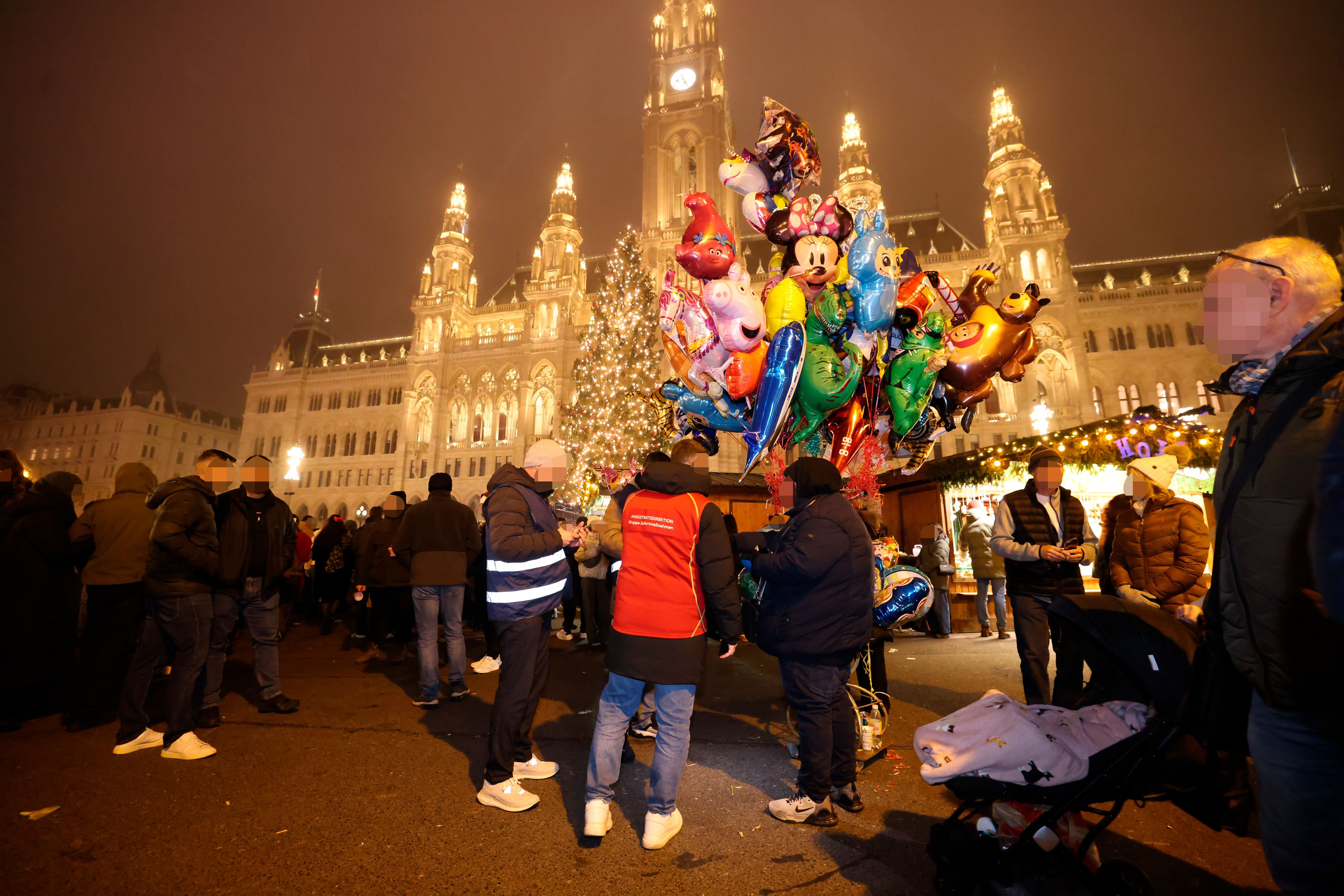 Auch auf den Weihnachtsmärkten am Rathausplatz, am Hof und auf der Freyung wird amtsgehandelt. Bilanz des Abends: 14 Anzeigen durch das Magistrat, zwei durch die Polizei, vier Identitätsfeststellungen.