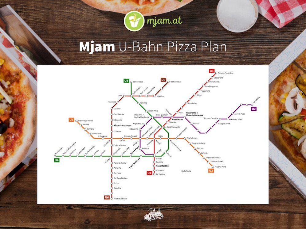 Das Wiener U-Bahn-Netz umfasst insgesamt 104 Stationen. Rund um jede von ihnen gibt es mindestens eine Pizzeria. Mit dem neuen "Mjam U-Bahn Pizza Plan" ist es nun für Freunde der italienischen Köstlichkeit einfacher, hier den kulinarischen Überblick zu behalten. Der Plan verrät pro Station einen Pizza-Hotspot.
