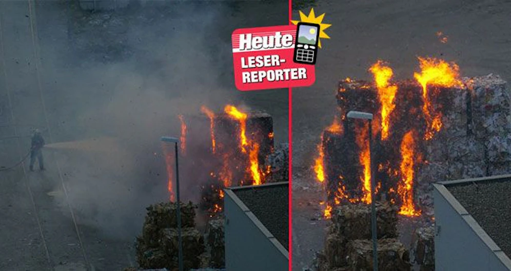 Feueralarm in Wien-Favoriten: 50 bis 70 Tonnen Altpapier, die im Bereich des Frachtbahnhofs Matzleinsdorf im Freien gelagert waren, haben am Montagabend gegen 19.45 Uhr plötzlich Feuer gefangen. Die Papierstöße brannten sofort lichterloh. Leserreporter Markus Gspan hielt die Flammen fest.