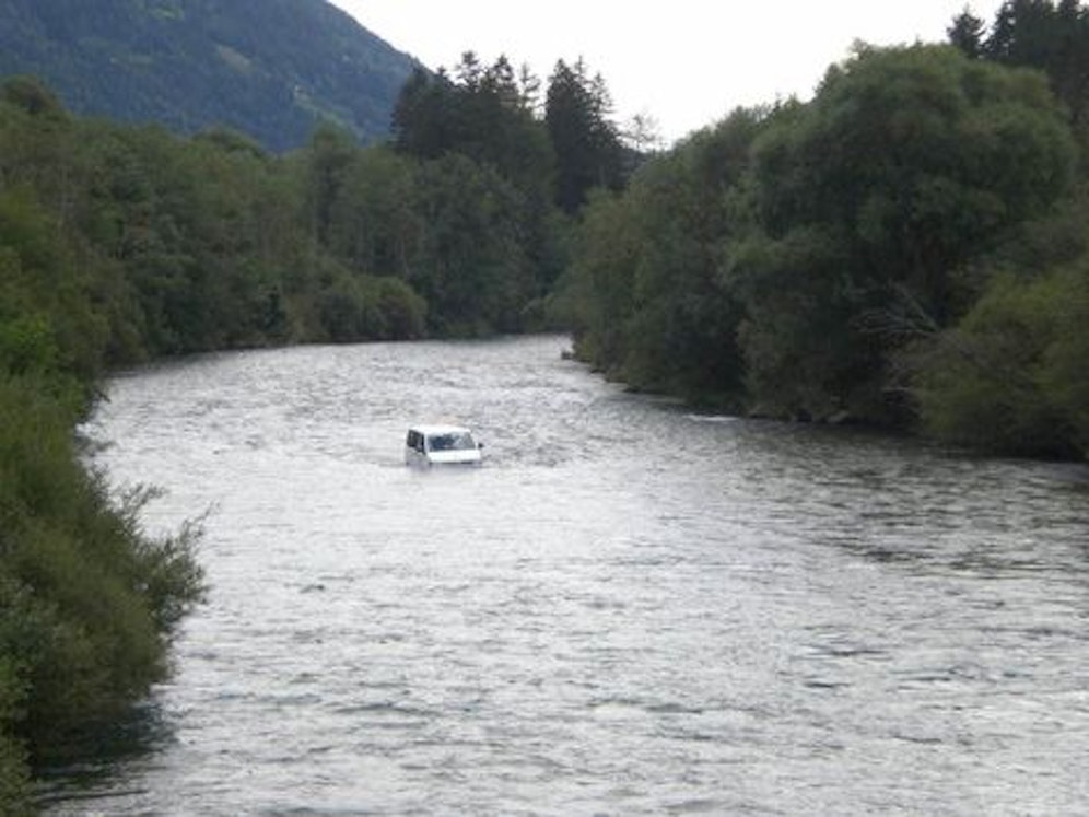 Der Mann arbeitete laut Polizei gerade an einer Brücke über die Möll als er seinen Firmenbus etwa 100 Meter flussabwärts entdeckte - mitten im Fluss stehend.