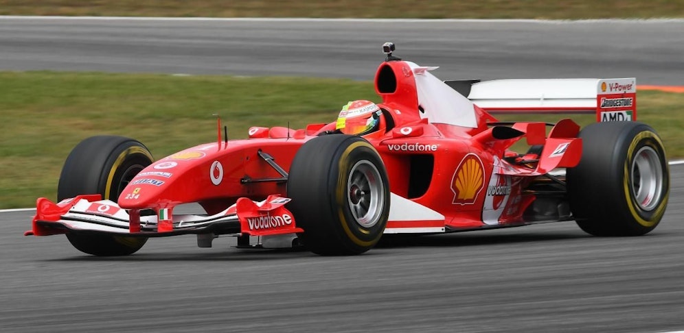 Der 20-Jährige durfte einige Demonstrationsrunden im Ferrari F2004 drehen. Damit holte der 50-Jährige seinen siebten und letzten WM-Titel.