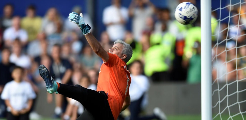 Der Star-Coach lief dabei nämlich als Torhüter für das Team der englischen Fußball-Legende Alan Shearer auf - und machte daraus prompt seine eigene Riesen-Show. 30 Minuten vor dem Spielende wurde der Portugiese eingewechselt, kurz darauf holte er sich wegen Zeitspiels die Gelbe Karte ab - auch wenn er den Schiri höchst theatralisch von seiner Unschuld überzeugen wollte.