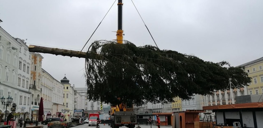 Um 10.30 Uhr – noch vor Faschingsbeginn um 11.11 Uhr, denn da zog übrigens auch die erste Faschingsgilde über den Hauptplatz. In den nächsten Tagen wird der Baum auf Hochglanz gebracht. Eine Lichterkette mit 1000 Lämpchen wird angebracht. Am 23. November wird er bei der Eröffnung des großen Christkindlmarkts an Linz-Bürgermeister Klaus Luger (SPÖ) offiziell übergeben.