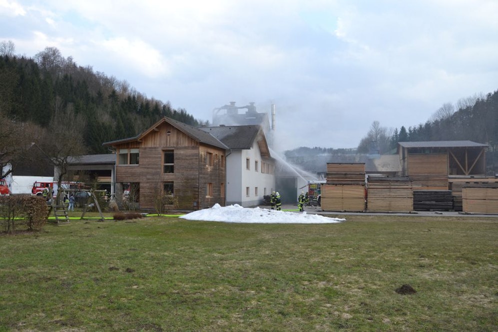 Ein Nachbar hatte das Feuer gegen 17.20 Uhr bemerkt. Die Flammen zerstörten nicht nur den Dachstuhl des Sägewerkes, sondern beschädigten auch den des zu diesem Zeitpunkt leer stehenden Wohnhauses, so die Polizei. Verletzt wurde niemand. Die Ursache des Brandes war vorerst nicht bekannt.