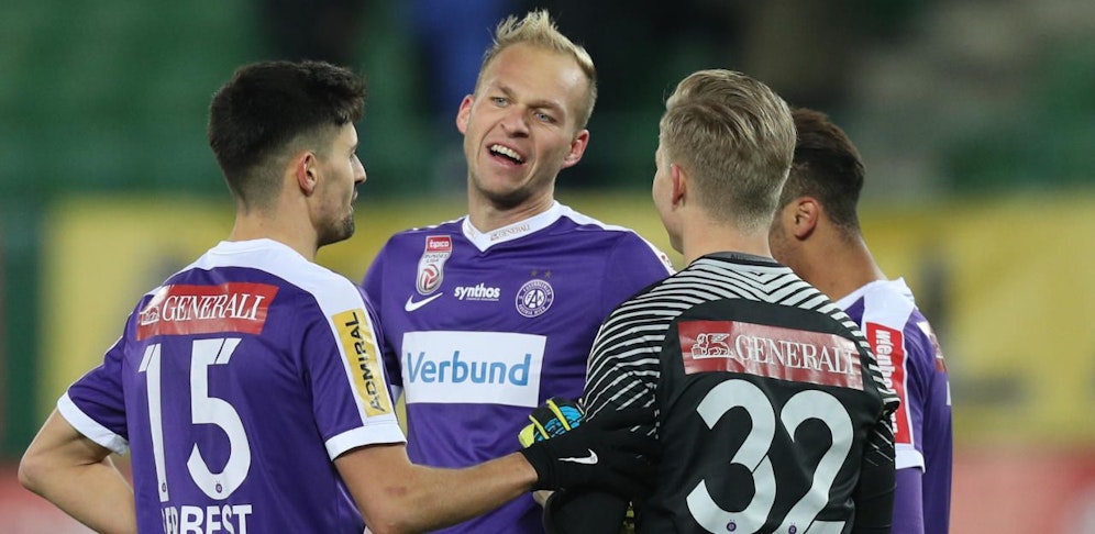 Die Wiener Austria freute sich über das 1:1 im Topspiel gegen Red Bull Salzburg wie über einen Sieg. Kein Wunder, der Ausgleich gelang den Veilchen in letzter Sekunde. In der 93. Spielminute nützte Christoph Monschein den einzigen Schuss auf das Tor von Salzburg-Schlussmann Alexander Walke zum 1:1. Andreas Ulmer hatte die Bullen in Minute 79 in Führung geschossen.