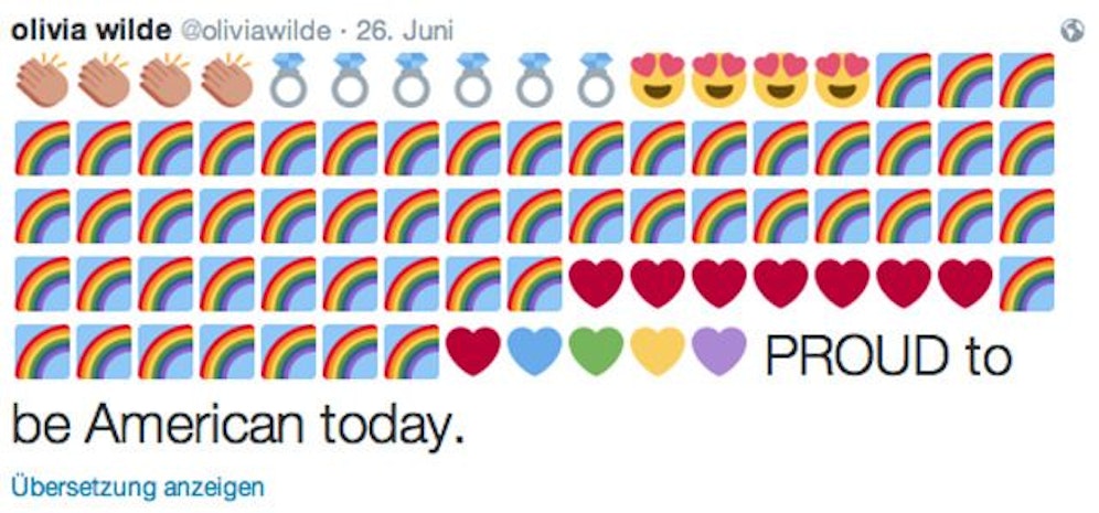 Was für eine historische Entscheidung! Am Freitag verkündete der Oberste Gerichtshof, dass ab sofort homosexuelle Eheschließungen in allen 50 US-Bundesstaaten legalisiert wurden! Die ganze Welt erstrahlt seitdem in Regenbogenfarben und auch die Stars freuen sich über diese Weltentwicklung. Hier sind ihre Reaktionen!
