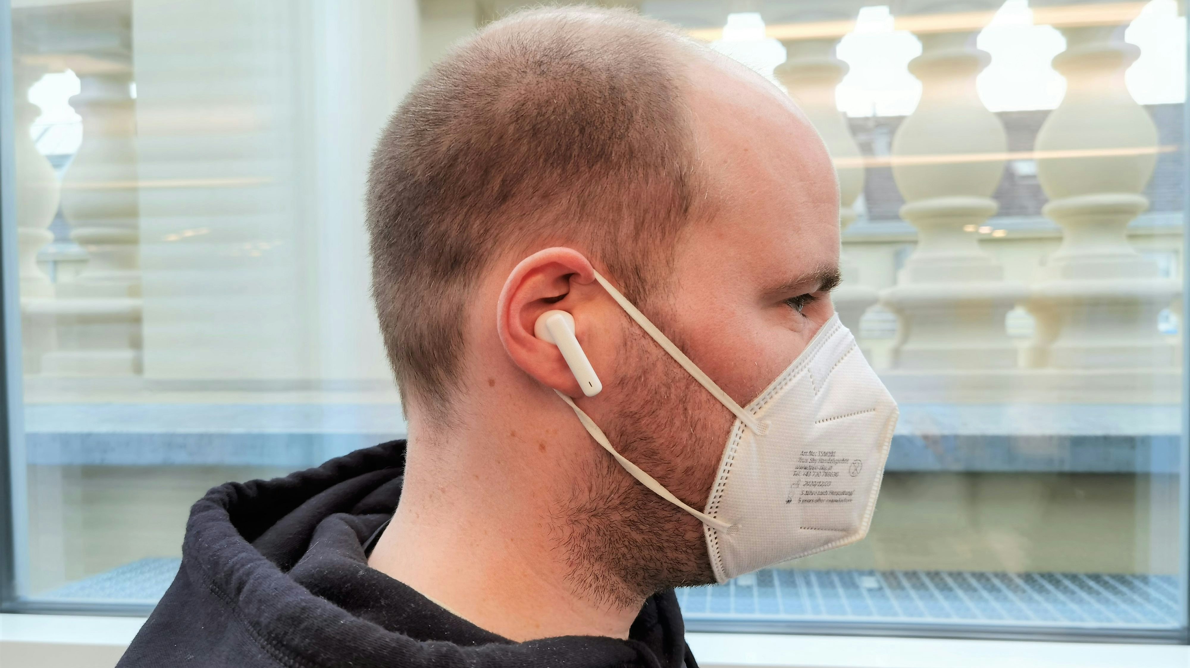 Der Sitz im Gehörgang ist sicher, auch beim Laufen fallen sie nicht aus den Ohren. Gleichzeitig tragen sie sich aber auch über mehrere Stunden hinweg nicht unangenehm. Vorsicht ist allerdings bei allzu schweißtreibenden Sportarten, im Regen oder beim Baden und Schwimmen geboten: Etwas Feuchtigkeit halten die Huawei FreeBuds 4i aus, wasserdicht sind sie aber nicht. Top dafür: Durch die glatte Oberfläche und die Silikonpolster lassen sie sich gut und schnell reinigen.