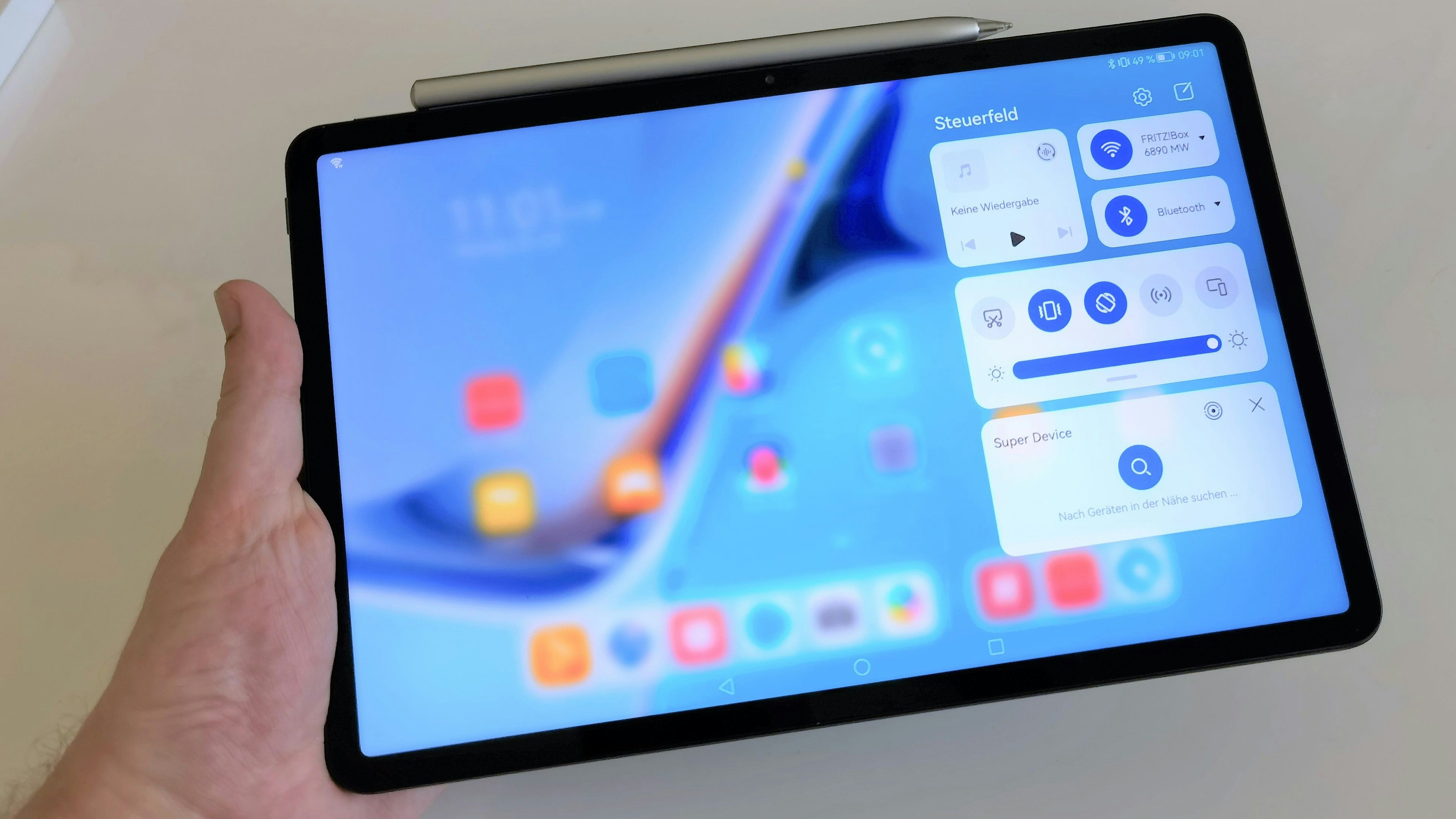 Damit das Tablet auch zum Arbeitstier und Laptop-Ersatz werden kann, können der Stylus M-Pencil und ein magnetisches Keyboard verbunden werden, Letzteres wirkt auch als Schutzhülle. Beide Gadgets verbinden sich magnetisch mit dem Tablet und versorgen sich so mit Strom. Das Zubehör gibt es derzeit noch im Rahmen einer Rabattaktion gratis bei teilnehmenden Händlern dazu, ansonsten muss es separat erworben werden. Im Test zeigte sich die Kombi aus Tablet und Zubehör toll, vor allem beim mobilen Arbeiten, wenn man wenig mitnehmen will.