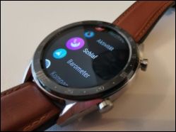 Statt wie die ersten beiden Huawei Watches setzt die Watch GT nicht auf das Betriebssystem Android Wear, sondern bringt ein eigenes System mit sich, das energieschonender funktionieren soll. Es zeigt sich simpel, intuitiv und übersichtlich. Einstellungen nimmt man per Wisch nach unten am Bildschirm (1,39 Zoll AMOLED-Farbbildschirm, 454 x 454 Pixel) vor, per Druck lassen sich verschiedene Ziffernblätter auswählen. Die obere Druck-Krone führt zu den Apps, über die man Nachrichten erhält, Fitnessdaten ausliest oder das Wetter anzeigen lässt.