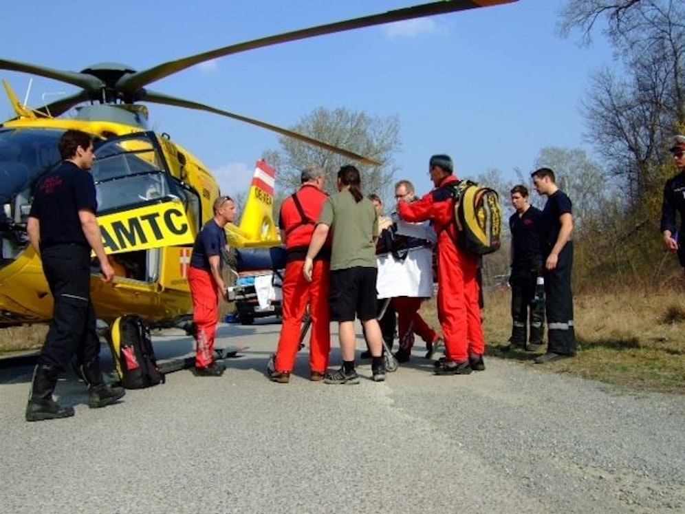 Der Notarzthubschrauber flog den Verletzten zur Erstversorgung ins Wiener AKH.