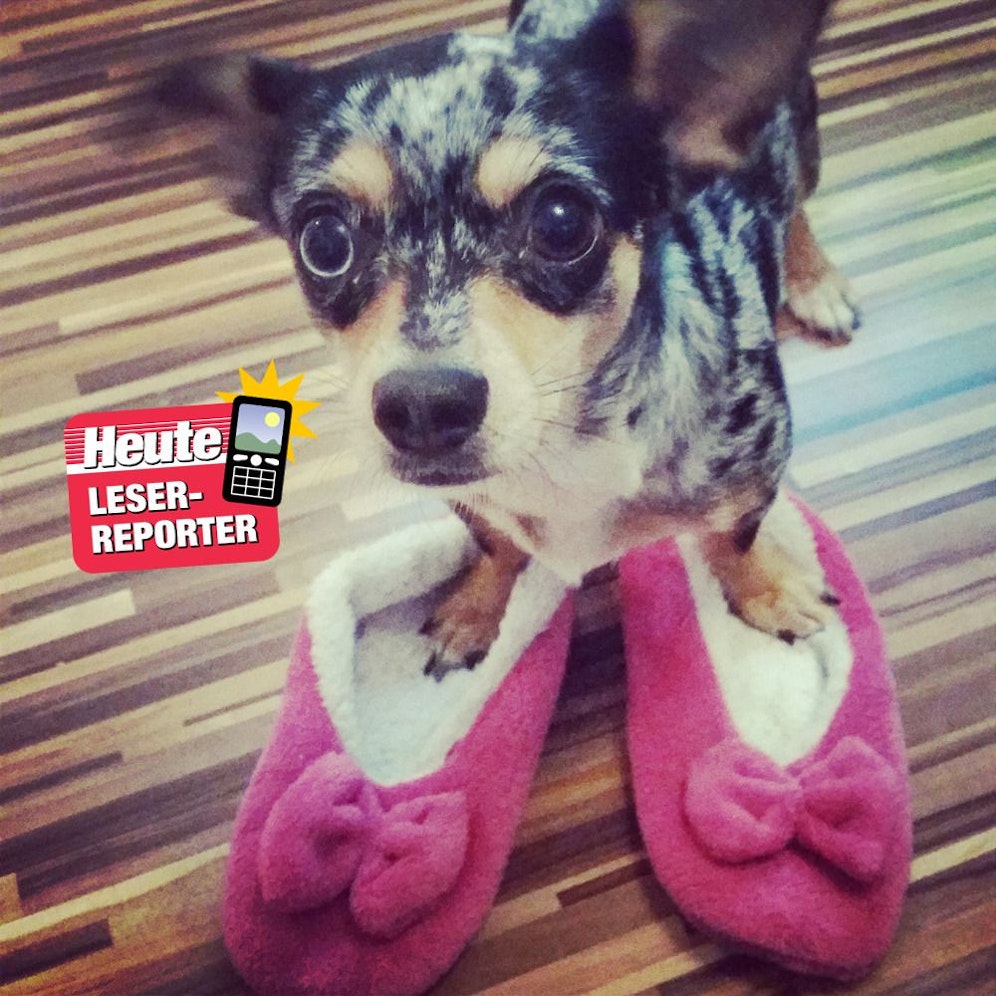 Der süße Hund ist der Traum einer jeden Frau. Denn er teilt mit dem weiblichen Geschlecht die Leidenschaft für Schuhe. Nur zu gerne schlüpft er in die pinken "Flauschiballerinas", wie sie Frauerl und "Heute"-Leserreporterin Isabel Enzenhofer aus Linz nennt.