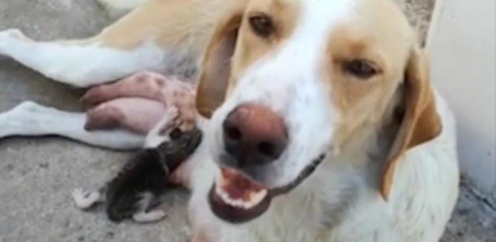 Eine frischgebackene Hundemutter hat in Griechenland ein Kätzchen adoptiert. Das Kleine wurde von seiner eigenen Mutter verlassen und stand kurz vor dem Hungertod.