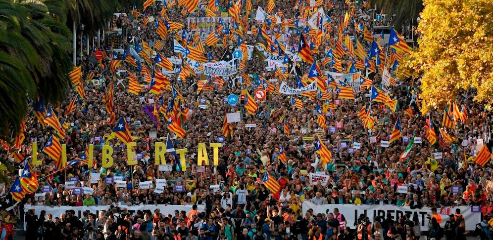 Erneut sind Hunderttausende Katalanen in Barcelona auf die Straße gegangen. Sie protestierten gegen langjährige Haftstrafen für neun Führer der Unabhängigkeitsbewegung.