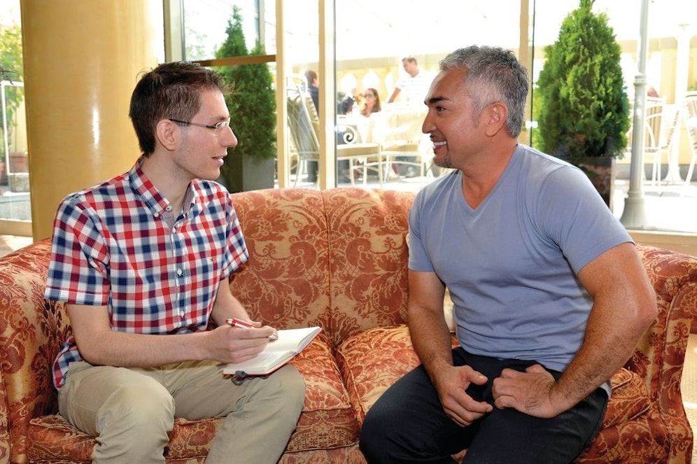 Mit seiner TV-Show "Dog Whisperer" lockt Cesar Millan (45) ein Millionenpublikum vor den Fernseher – und er reist auch wie ein Popstar, kam am Mittwoch von Hamburg im Privatjet nach Wien. Mit dabei: ein 29-köpfiger Betreuerstab und Millans Lieblingshunde (ein Pitbull und ein Zwergspitz).