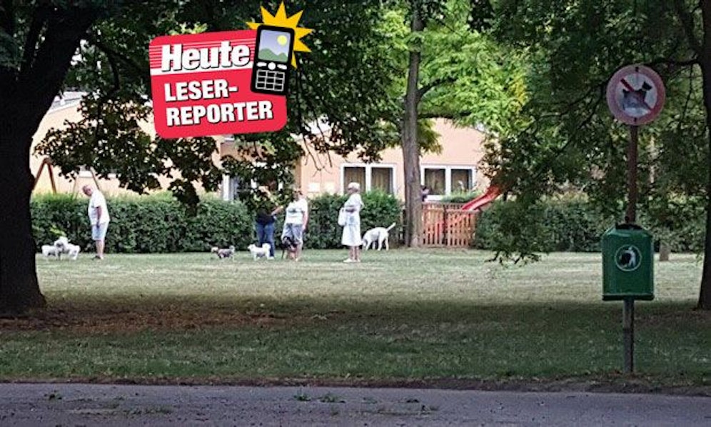 Leserreporter E. bemüht die Unschuldsvermutung: "Hauptsache Hundeverbot und gleich sechs Hunde auf der Wiese. Zufall", kommentiert er den Schnappschuss.