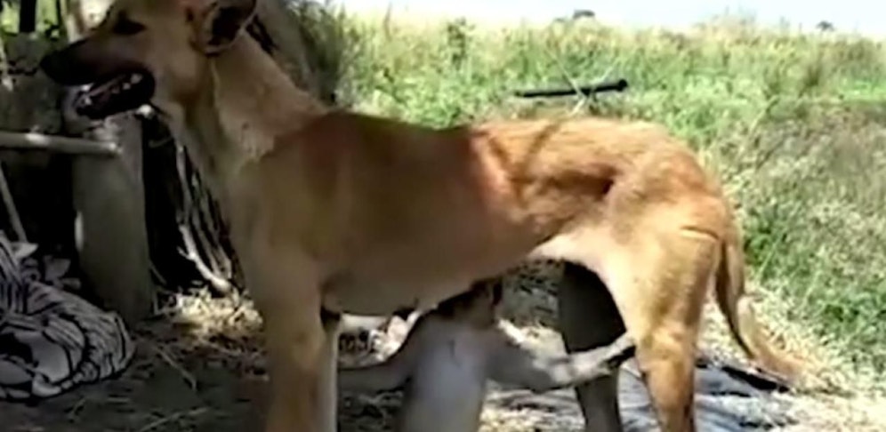 Ein verwaistes Affen-Baby wurde von einem Rudel streunender Hunde angegriffen und schien fast keinen Ausweg mehr zu haben. Doch in letzter Sekunde rettet eine einäugige Hündin das Kleine. Seitdem läuft "Ruby" nur mehr mit ihrem Adoptivbaby auf dem Rücken durch ihr Heimatdorf Kanskheda, im zentralindischen Bundesstaat Madhya Pradesh. Die Hündin selbst hat keine Welpen, kümmert sich um das Affen-Baby als wäre es ihr eigenes Kind und lässt ihn sogar an der Brust trinken.