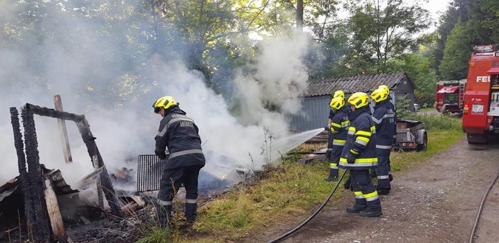 Als die Einsatzkräfte eintrafen, fanden sie eine brennende Gartenhütte vor. Insgesamt mussten 14 Mann mit zwei Tanklöschfahrzeugen der Feuerwehren Oberaich und Picheldorf ausrücken, um die Flammen unter Kontrolle zu bringen.
