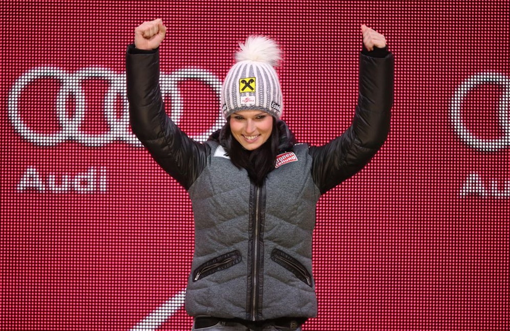 Danach musste auch noch Lindsey Vonn für Ordnung sorgen. Für das offizielle Foto nach der Siegerehrung hatte man die US-Amerikanerin fälschlicherweise links von Fenninger positioniert. Die Bronzemedaillengewinnerin schaltete aber schneller als die anwesenden Fotografen und bat die Silberne Tina Maze zum Seitenwechsel.