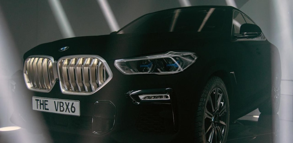 Die Präsentation des weltweit ersten Autos mit Vantablack VBx2 Nanostruktur-Beschichtung wurde auf der IAA in Frankfurt (Deutschland) auch gebührend zelebriert: Bewacht von finster dreinblickenden Sicherheitsleuten in dunklen Anzügen wurde der neue X6 in einem gesonderten Raum präsentiert, um die Scheinwerferfunktionen und die beleuchtete BMW-Niere "Iconic Glow" entsprechend vorzustellen.