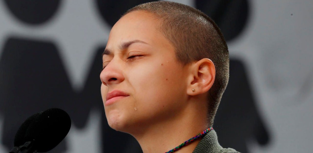 Minutenlang steht Emma Gonzalez schweigend am Mikrofon. Ihr Blick ist geradeaus gerichtet auf die gewaltige Menschenmenge, die sich in Richtung des Weißen Hauses erstreckt. Tränen laufen der jungen Überlebenden des Massakers vom Valentinstag die Wangen hinab. Auch manche in der Menge weinen.