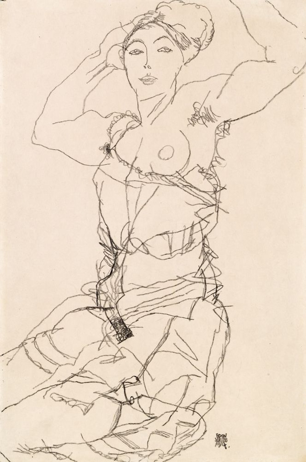 Egon Schieles "Junge Frau in Unterwäsche mit erhobenen Armen" (1914, 80.000 bis 160.000 Euro)