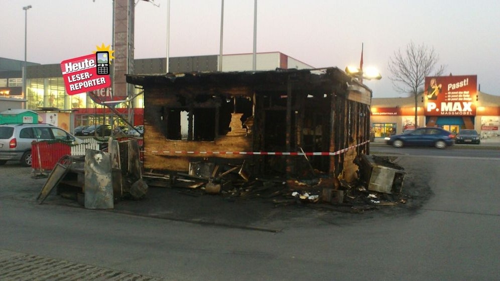 Der Stand wurde durch das Feuer fast vollkommend zerstört. Leserreprter Markus Baumgarten, der uns ein Foto der abgefackelten Holzhütte zukommen ließ meinte etwas ironisch, dass an jenem Tag "Spezial-Grillhendl" am Speiseplan stand.