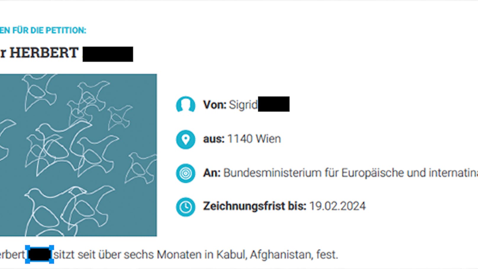 Es wird gemunkelt, dass der verstörende Taliban-Trip von FPÖ-Urgestein Andreas Mölzer nach Afghanistan ebenfalls zum Zweck hatte, über eine Freilassung des inhaftierten Rechtsextremen zu verhandeln – offenbar ohne Erfolg. Nun soll die Online-Petition die Befreiung des 84-Jährigen vorantreiben – es wurden bereits 50 Unterstützungserklärungen gesammelt.