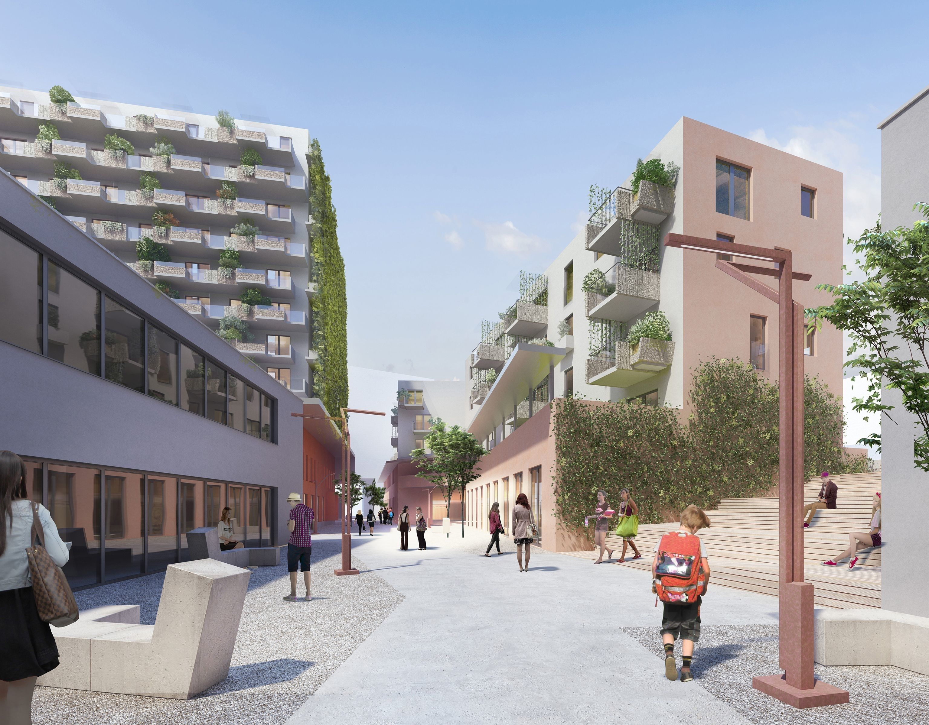 Der neue Stadtteil, an dessen Planung Stararchitekt Harry Glück maßgeblich beteiligt war, soll rund 50.000 Quadratmeter umfassen und den Bewohnern großzügige individuelle Freiräume sowie Gemeinschaftsflächen bieten. So sieht das Konzept neben 608 geförderten Wohnen und 217 besonders kostengünstige SMART-Wohnungen, auch ein Schwimmbad, offene Wasserläufe, Kinderspielplätze sowie Flächen für "urban gardening" vor.