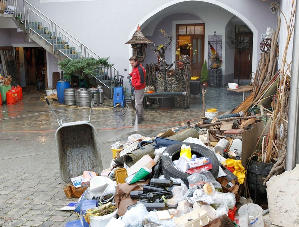 Es fließt also immer noch mehr als doppelt so viel Wasser durch den Ort als zu Normalzeiten. Eine genaue Prognose vom hydrographischen Dienst wird es laut Johannes Moser am Samstag geben.